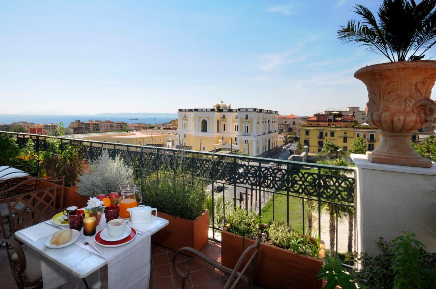 Located in Ercolano, Villa Battista is a 2-minute drive from the Tyrannian Sea. It offers free WiFi, a restaurant and elegant air-conditioned rooms.