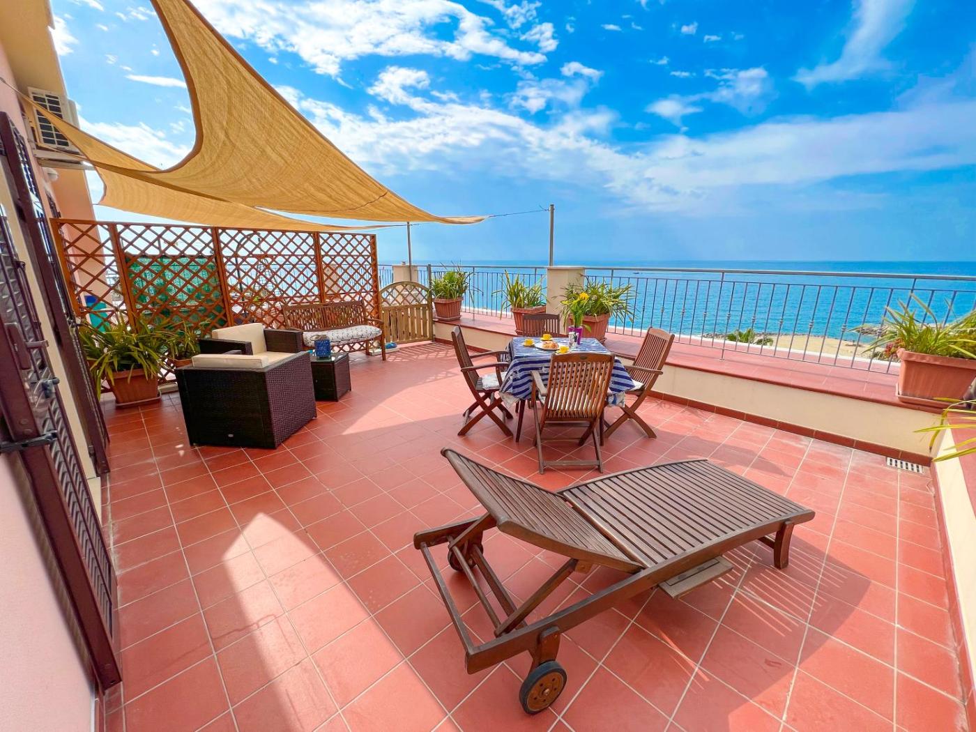 The spacious apartment with a terrace and sea views has 2 bedrooms, a living room, a flat-screen TV, an equipped kitchen with an oven and a microwave, and 2 bathrooms with a bidet. Towels and bed linen are available in the apartment. The property has an outdoor dining area.